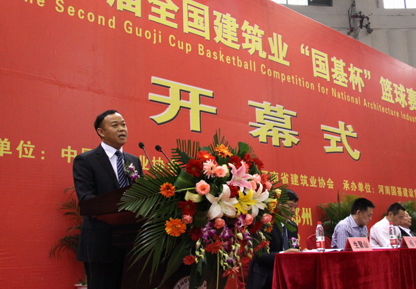 中国建协会副会长徐义屏宣布第二届全国建筑业“国基杯”篮球赛开幕
